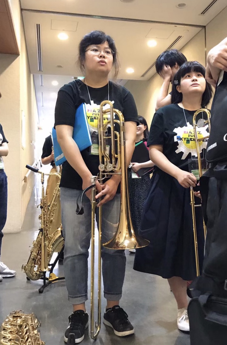 まず1人目が、もっちゃん!(奥) 口笛が上手な女の子です。入部1日目にして山野ビッグバンドジャズコンテストに乗せられたというブラックなエピソードを持っています。ちょこちょこ動く感じが可愛いみんなの愛されキャラです。 続いて、ベティちゃん(手前) 体験入部の日にベティブープの柄の服を着ていたため、私が「ベティちゃんの服を着てた子」と呼んでいたところベティちゃんという名前で定着してしまいました。 吹奏楽の経験が6年あるらしく、とても頼りになる存在、というか実質的なパートリーダーでした。 そして私、遠山恵です 右はもっちゃんですね ジャズスカ2019の当初はパートに私1人、しかもトロンボーン初心者。しかも低音がいいとかいう謎のわがままでバストロンボーン。 前途多難な状態の中、2人のトロンボーン希望の一回生が入ってきてくれたことをとても嬉しく思います。 部員ではないのですが、昨年のラストライブよりお世話になってるジャズスカ通年のトラの方(笑)にも今年も乗っていただいています。ありがとうございます 12月25日には今年最後のライブがございます! トロンボーン初心者3人一年間頑張ってきました。その成長をぜひ見に来てください! ラストライブまであと6日! (withうちのねこ) PR